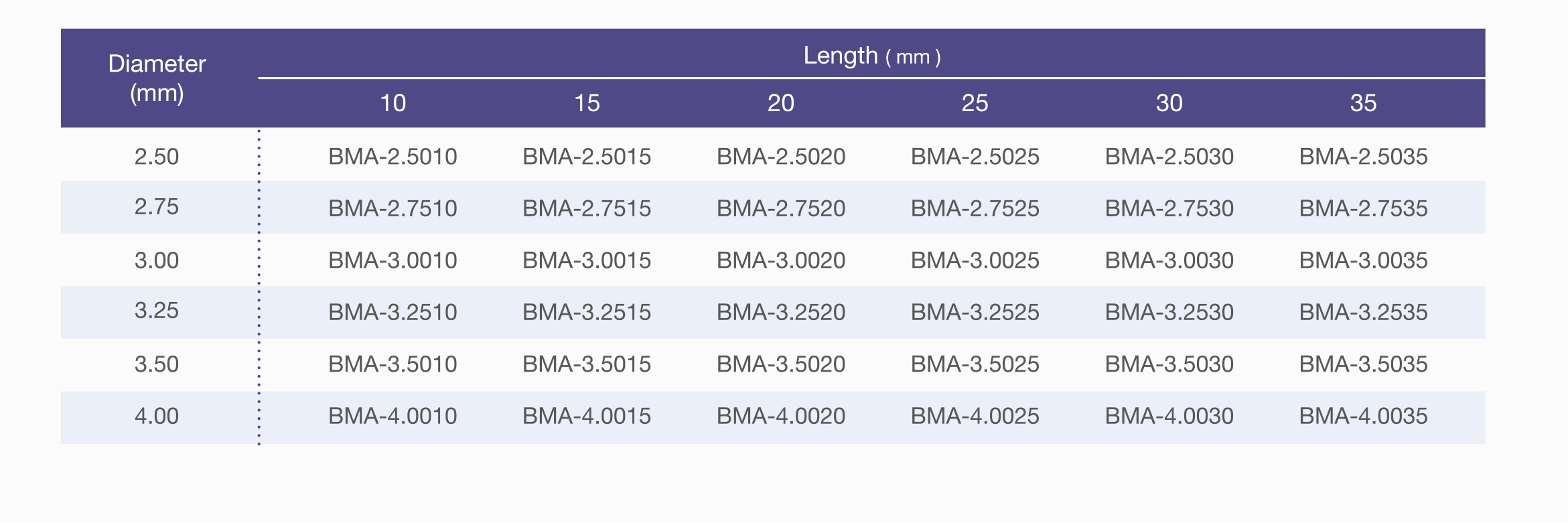 产品顺应表